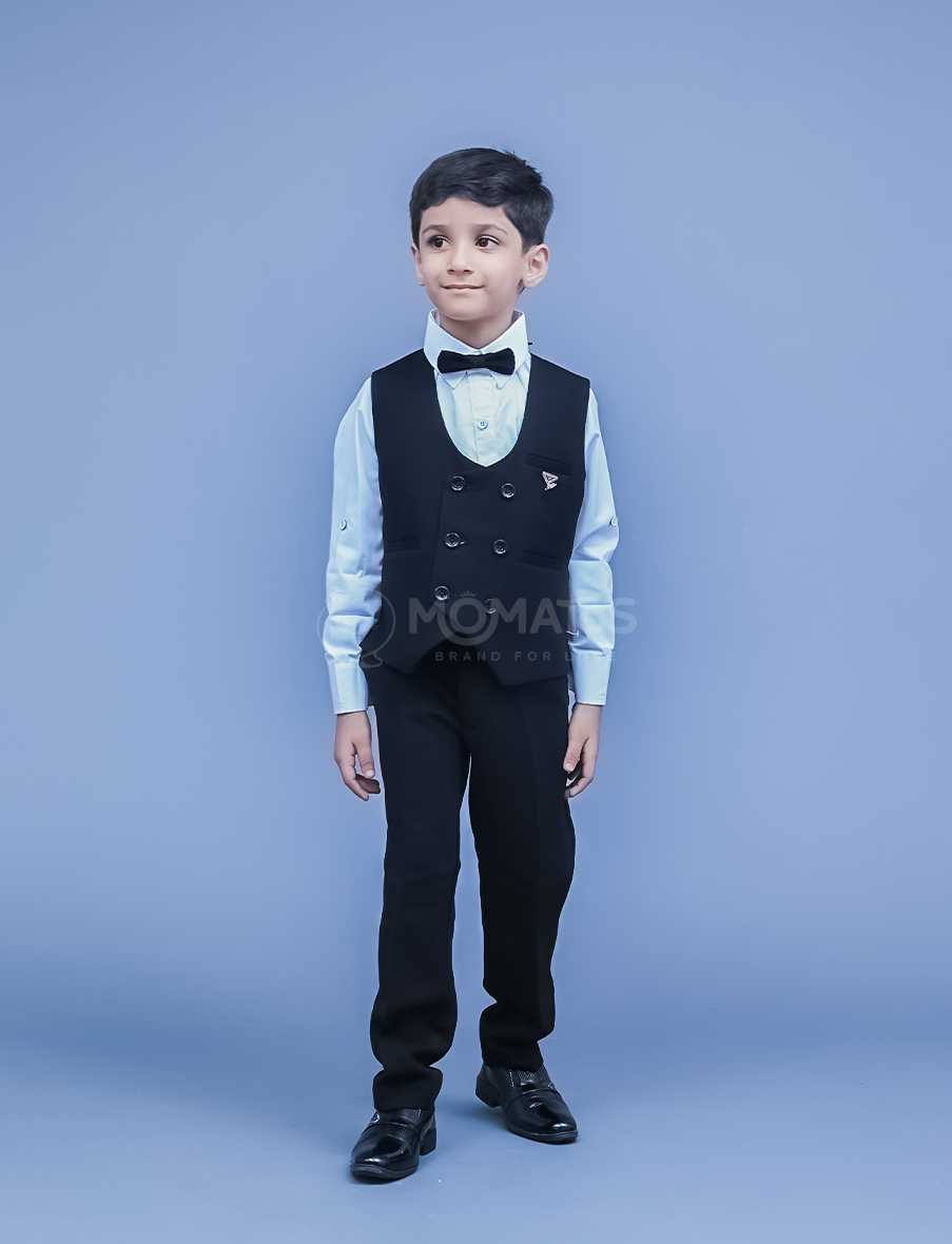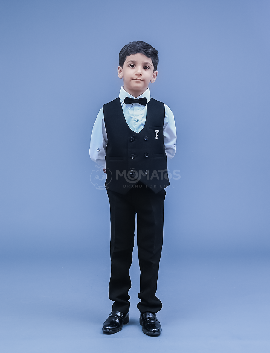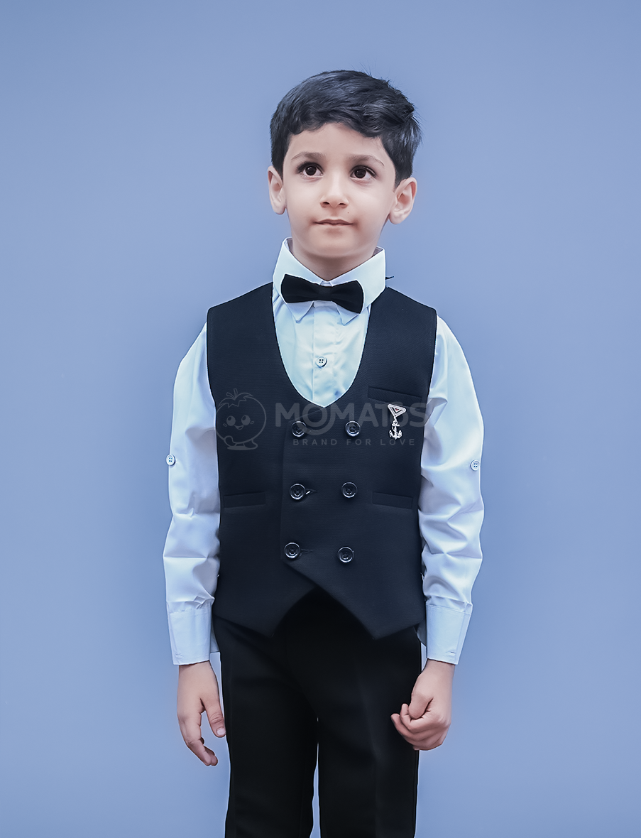 Stylish and sharp, this black party wear set for boys is perfect for any special occasion. Its classic design and sleek color ensure your little one looks dashing and refined.