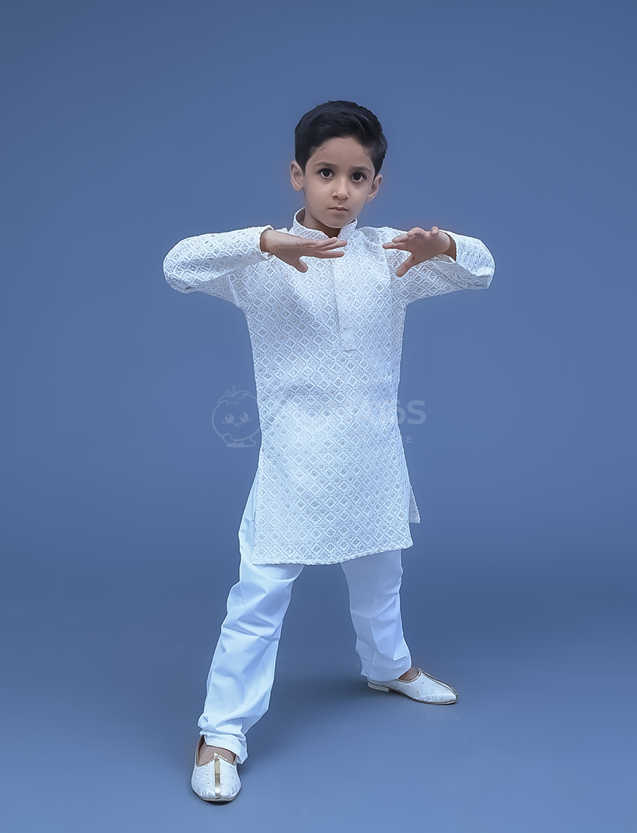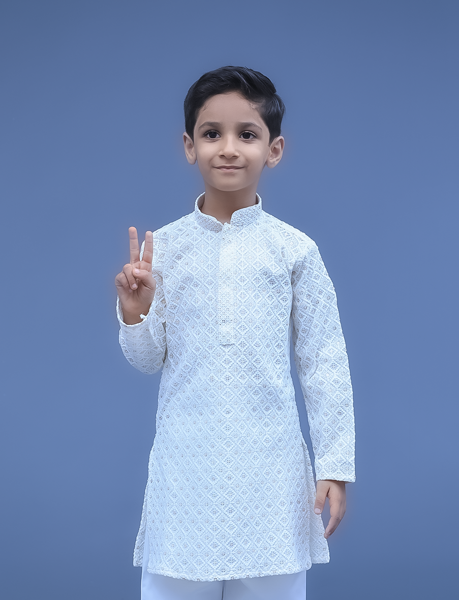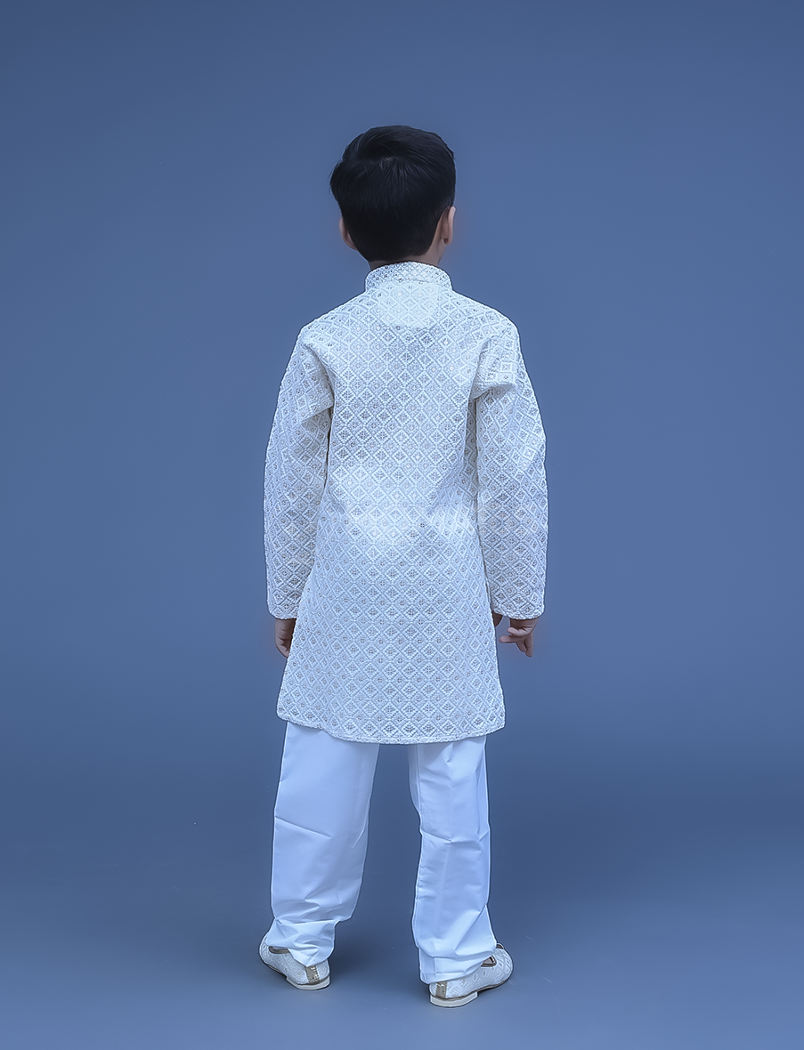 Classic and versatile, this cream 2-piece kurta pyjama set for boys is perfect for any festive occasion. The soft cream color and elegant design ensure a refined look, while the comfortable fit keeps your little one looking stylish and feeling at ease.
