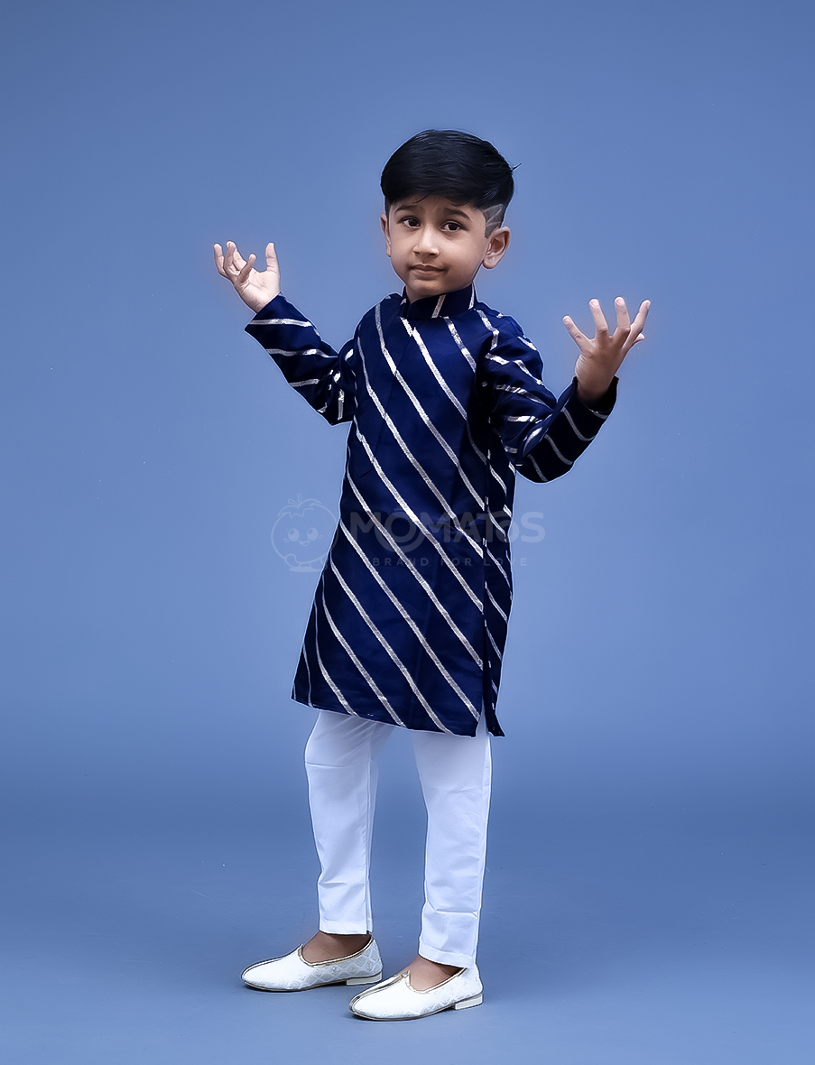 Elevate his wardrobe with our boys' kurta pyjama in vibrant hues and intricate detailing. Perfect for celebrating cultural traditions.