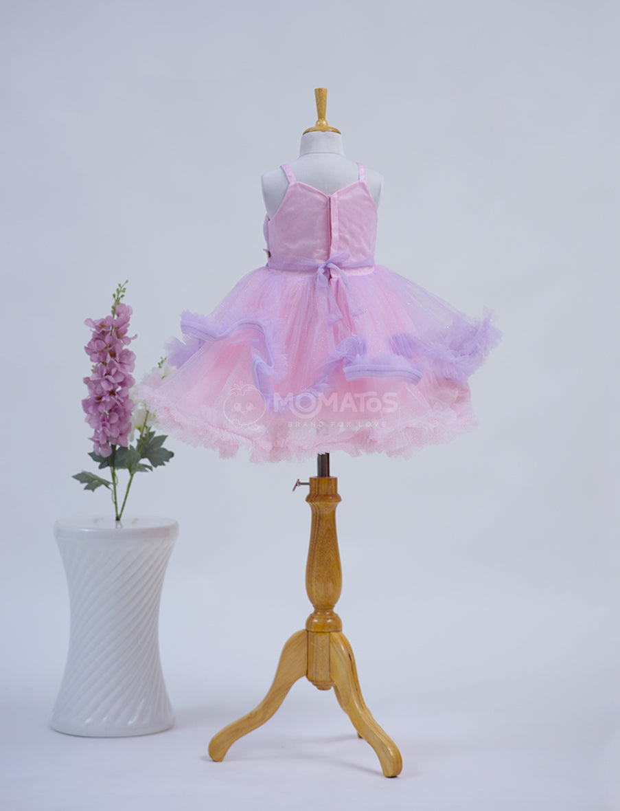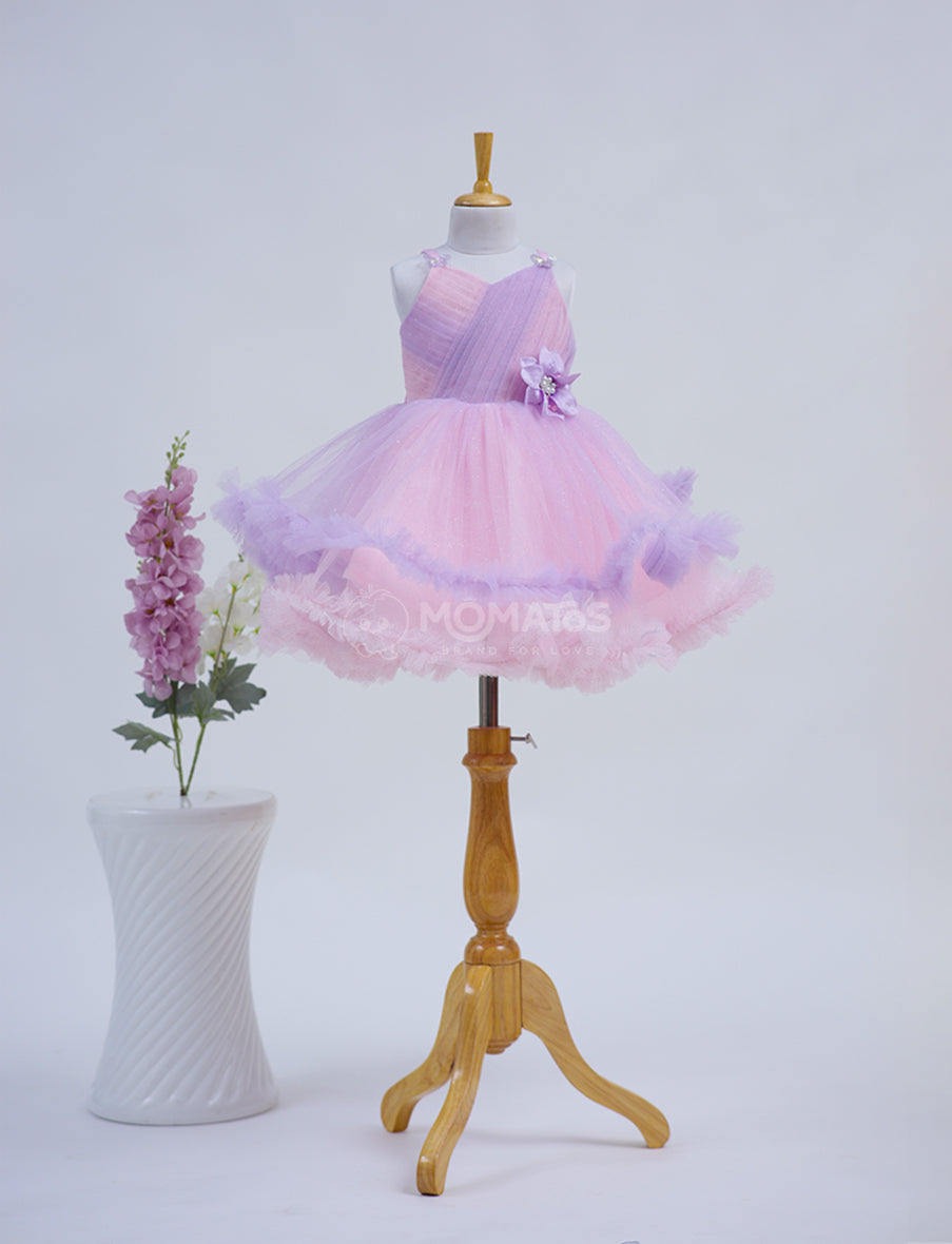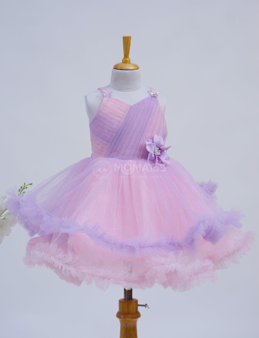 Adorn your little one with this stunning purple party dress, featuring layered tulle, floral embellishments, and a sparkly design. Perfect for birthdays and special occasions!