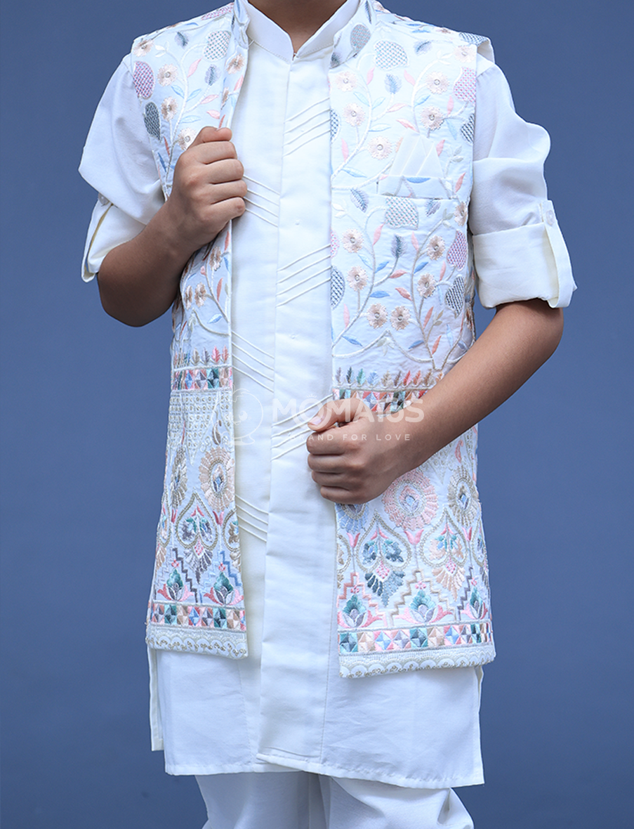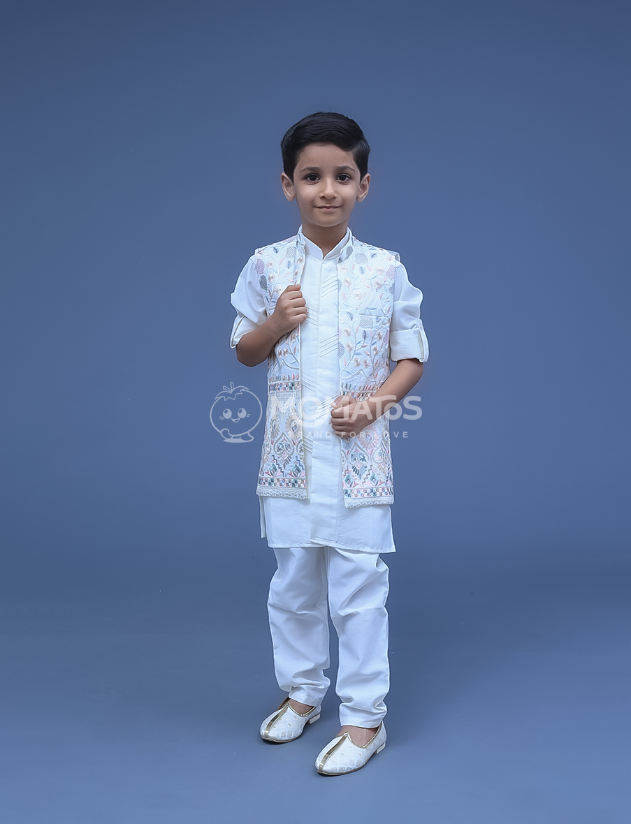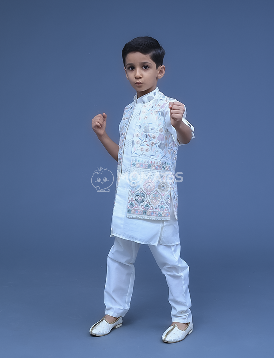 Elevate his look with our Cream 3PC Kurta Pyjama set. Classic and refined, this elegant outfit features a timeless color and stylish design, perfect for any festive occasion or special event.
