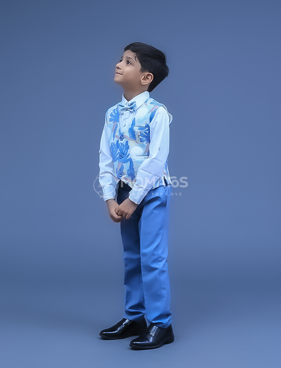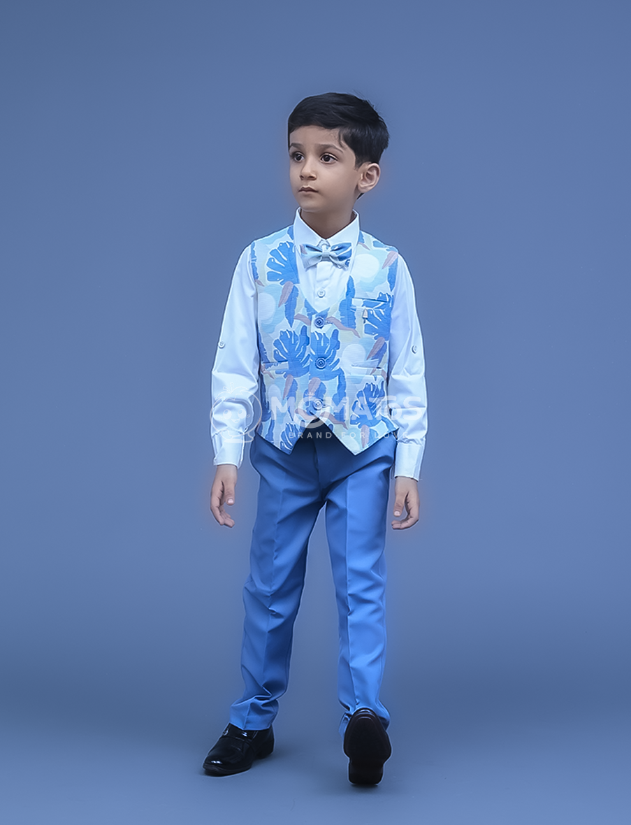 Fresh and charming, this sky blue party wear set for boys is ideal for any special occasion. Its soft, vibrant color and elegant design ensure your little one looks standout and stylish.