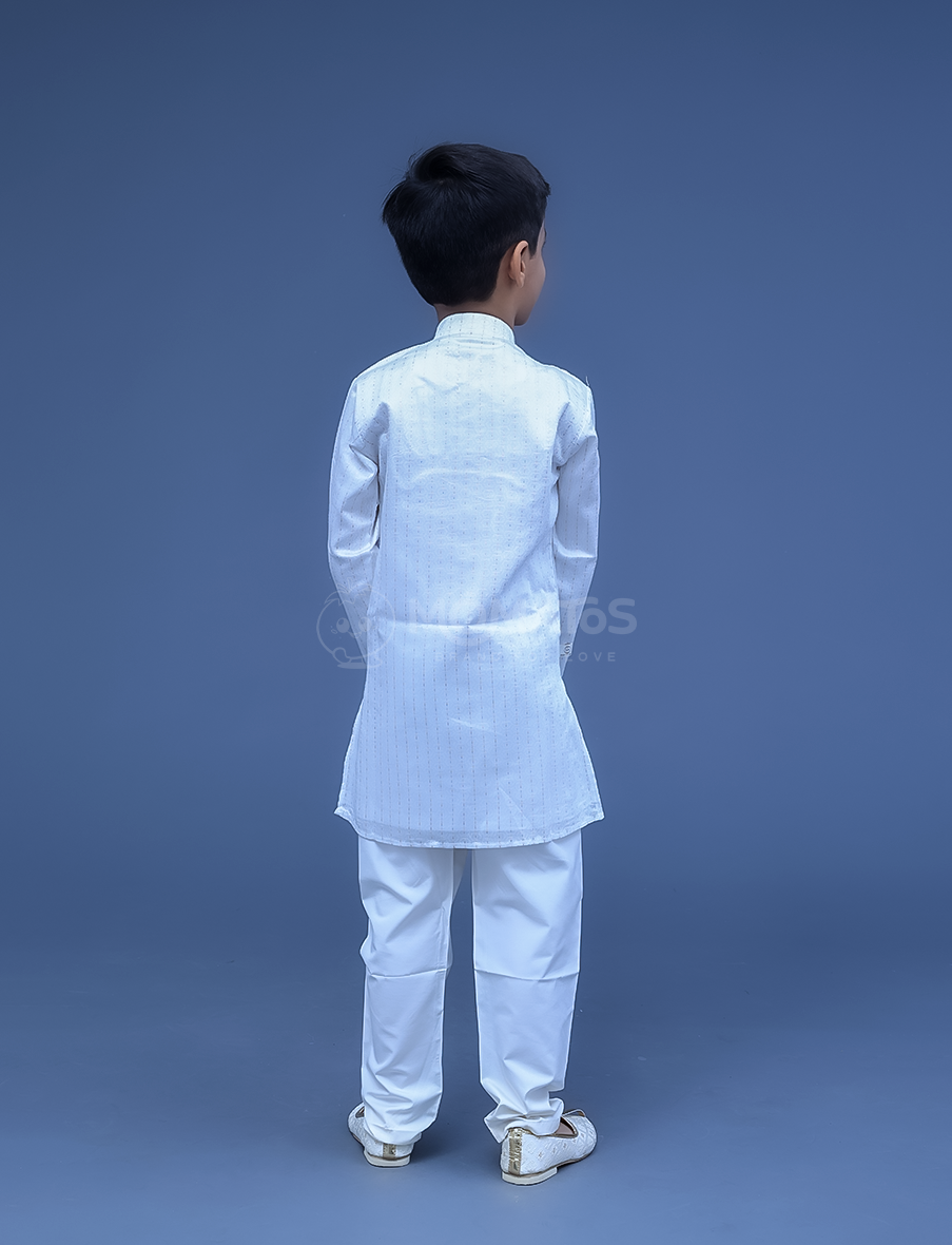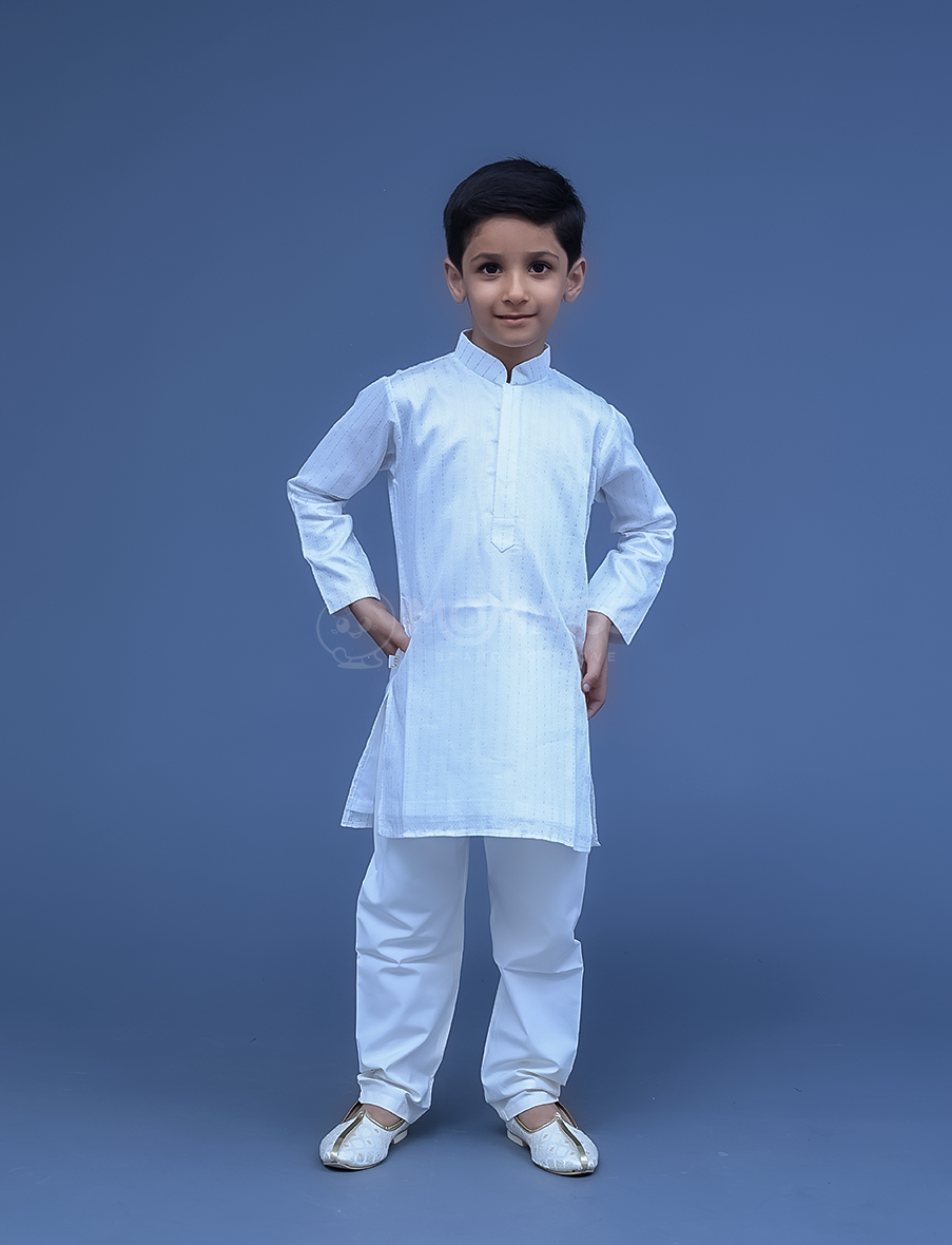 Simple yet elegant, this white kurta pyjama set is perfect for any occasion. Crafted from soft, breathable fabric, it offers both comfort and style. Its clean, classic design ensures a polished look that’s effortlessly sophisticated.